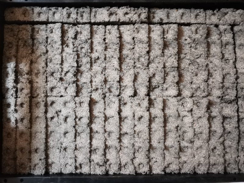 Das wächst dann sehr langsam. Ausgepflanzt wird in einem kleineren Zustand, als du letztens gepostet hast.