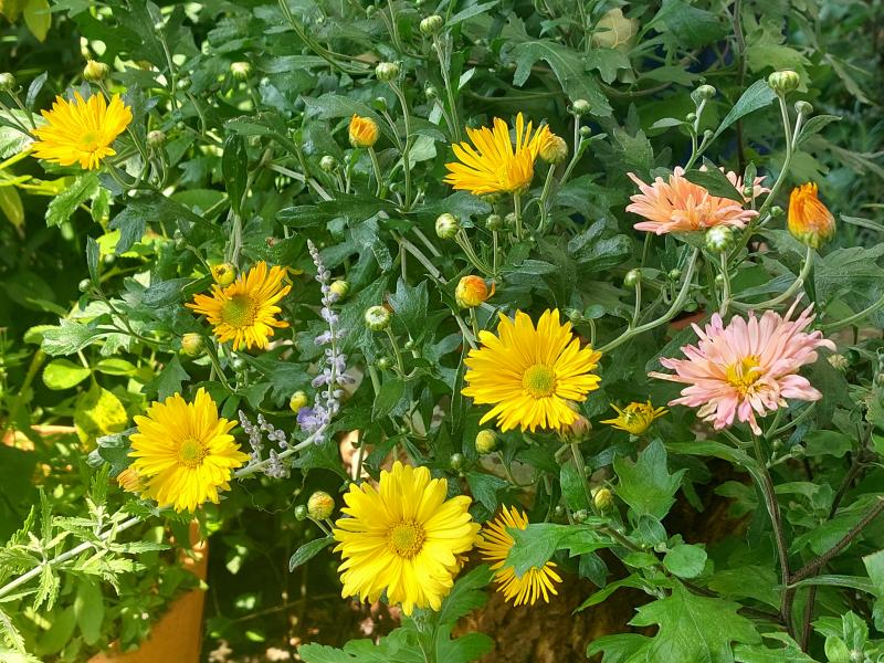 Die ersten Chrysanthemen, `Esther´und `Juligold´, markieren mit ihrer Blüte das nahe Ende der diesjährigen Gartensaison.