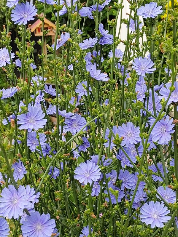 Die inzwischen über 2 m hohe Wegwarte hat den gestrigen Sturm ausgehalten.