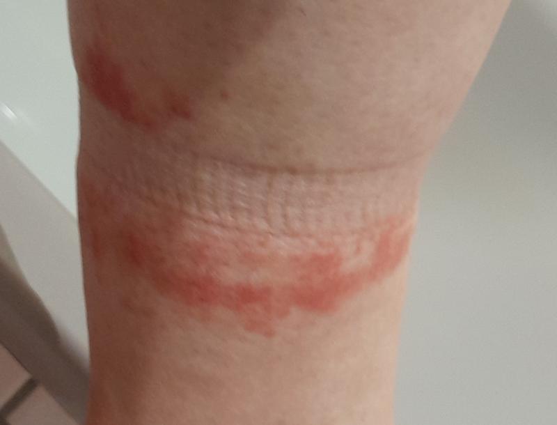 Und ich... reagierte auf irgendwas in der Scheune. Beide Beine sind geringelt. Und mein Antibiotikum habe ich zu spät nehmen können