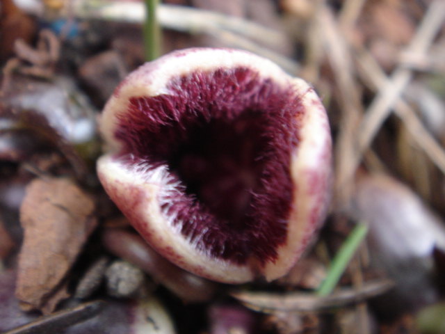 Hier die leuchtende Blüte von Asarum lemmonii ,das neue A.caudatum hat sehr ähnliche(?) ,hoffentlich ist das nicht die selbe Pflanze wie A.lemmonii?