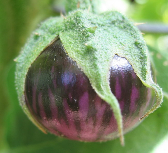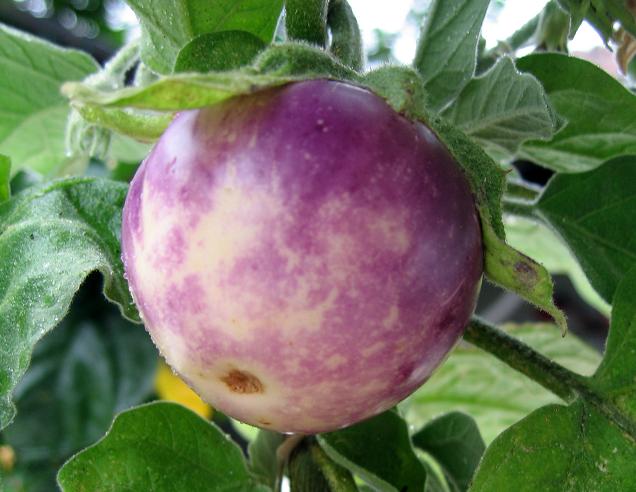 Diese Aubergine bekommt nur die Größe eines Tischtennisballes und ist in den nächsten Tagen soweit.