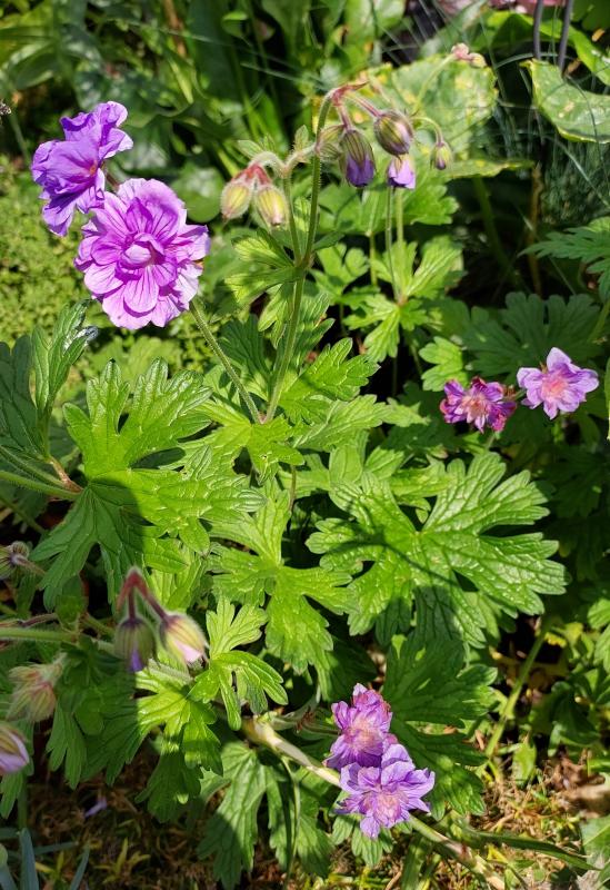 Das ist schon die Zweitblüte von Geranium Himalayense Plenum Birch Double. Eine Sorte, die sich nicht so breit macht.