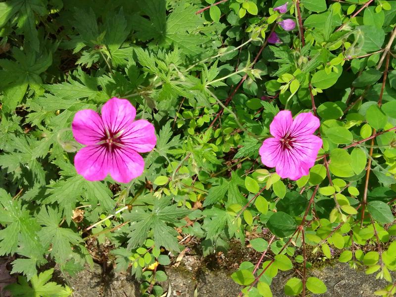 Links auf dem Foto ein G. x oxonianum und rechts G. sylvaticum Silva, die in der Nähe stehen. Alle anderen Storchschnäbel in diesem Gartenteil kann ich ausschließen.