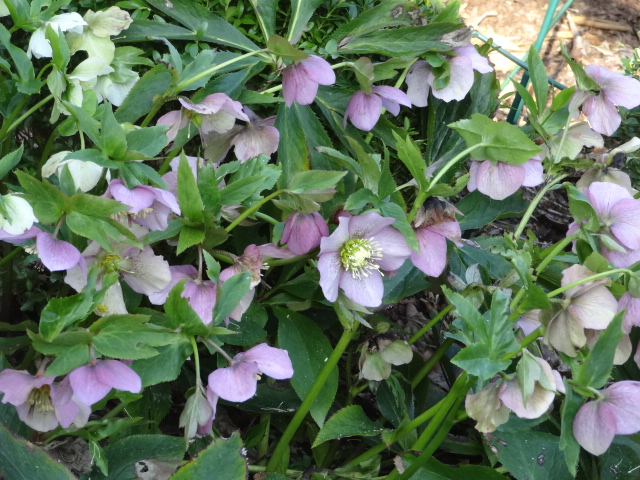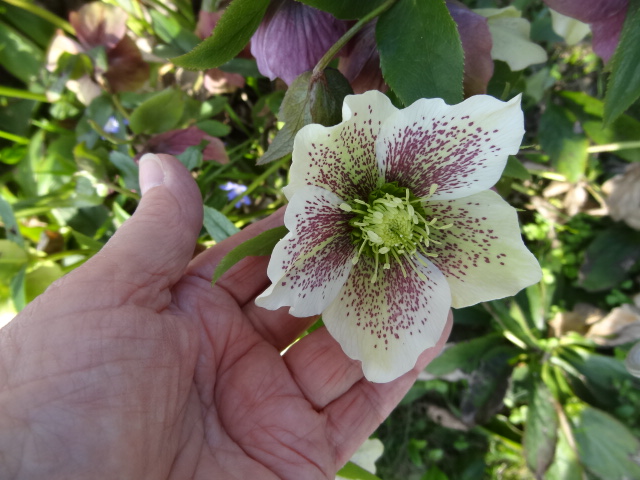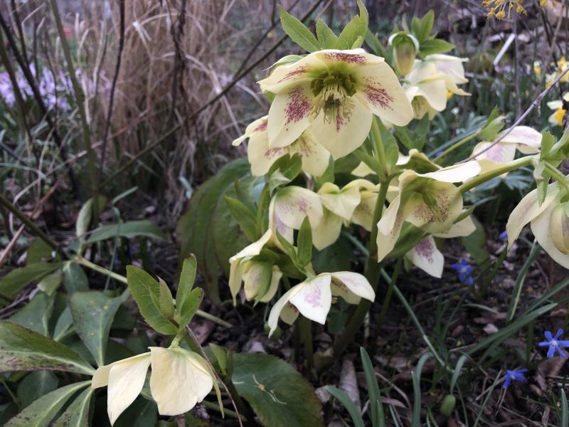 Derzeit sind alle Helleboren beliebte Ziele für die Bienen. Ich trau mich kaum, die Blüten anzulupfen, weil es ständig darunter summt.