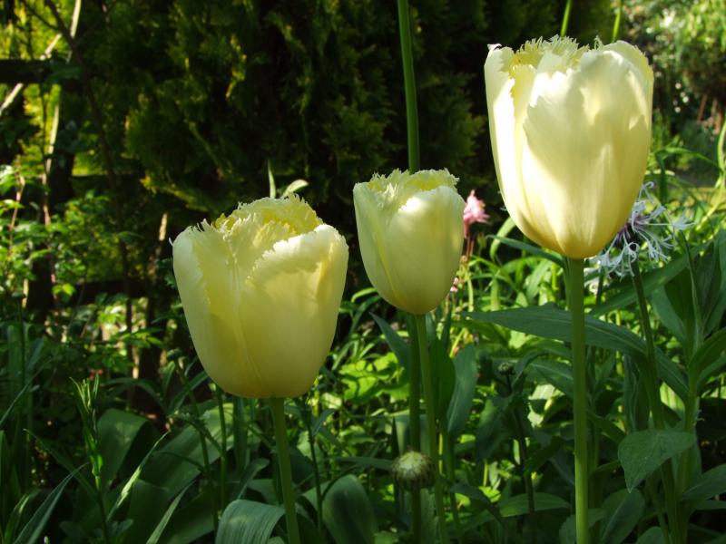 ;)Meine weiße Gartenabteilung ist jetzt überwiegend grün.Nur ein paar bunte Akeleien hatten sich an einer Stelle verirrt.Gepflanzt waren natürlich weiße,die sind weggemendelt. :-X