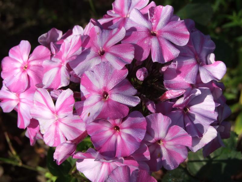 Das Foto habe ich frühmorgens aufgenommen, man sieht noch den Tau auf den Blüten. Der Phlox sieht auf dem Foto so aus, wie ich ihn selber auch sah - auf die korrekte Farbwiedergabe meines Fotoapparates lege ich großen Wert. Hier sind noch weitere Fotos, von denen das 1. am selben Tag, zur selben Zeit, das 2. einige Tage später aufgenommen wurde: