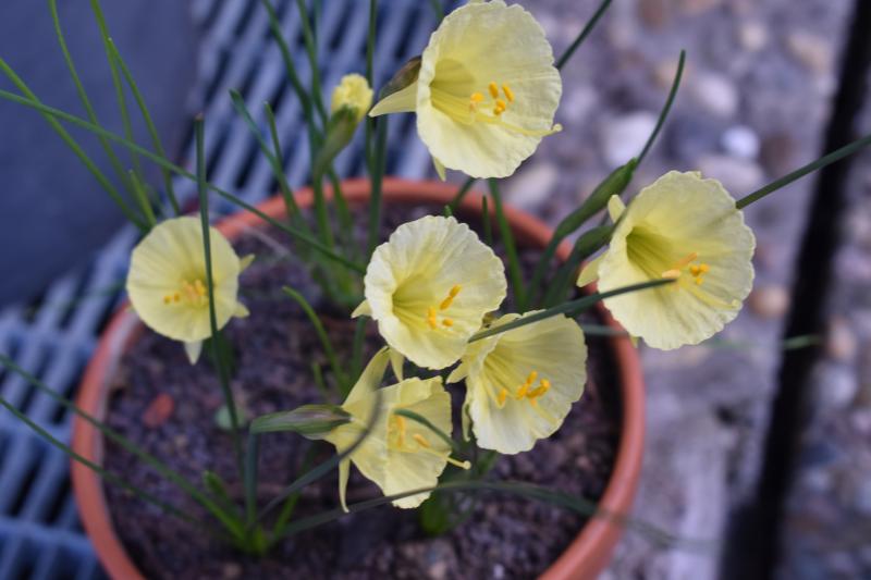 meine blühen jetzt schon seit 2 Wochen - narcissus cantab. 'Nylon', die haben sich sehr in der Jahreszeit vertan. Ich hätte eher mit Feber/März gerechnet.