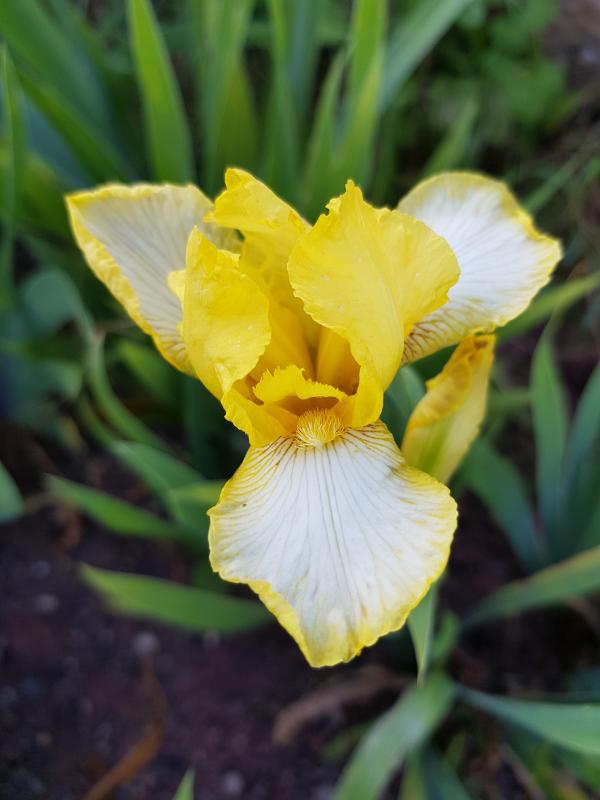 Nachdem ich jetzt Ende Juli nicht mit einer blühenden SDB gerechnet hatte, hätte ich sie fast übersehen. Das Foto ist von gestern. An dieser Stelle hatte sie im Frühling nicht geblüht, das war eher ein Ausweichquartier für überzählige Rhizome letztes Jahr.