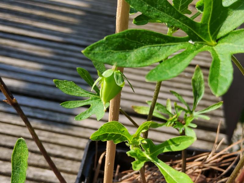 Die eine Knospe ist ansatzlos in eine Samenkapsel übergegangen, kleistogame Blüten also auch bei V. lobata. Sehr gut, wenn sie es auch alleine kann, dann brauche ich nicht den Pinsel zu schwingen ;D.