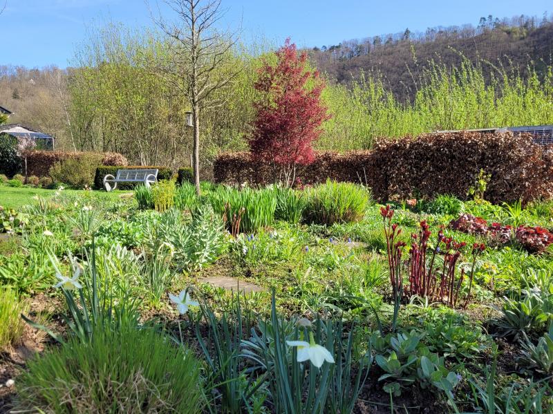 Blick rüber zum Präriebeet... das sich bekanntlich immer etwas mehr Zeit lässt... dafür dann im Sommer groß herauskommt. Auffällig sind nun schon die Austriebe der Paeonien. Klar haben die nichts mit der Prärie zu tun, aber es handelt sich ja hier um eine ' prärieangelehnte, wiesenhafte Freiflächenpflanzung' ;D