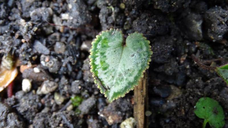 Ich hab bei uns heute einen kleinen Sämling im Garten entdeckt. Müsste ein Cyclamen mirabile sein. Schön finde ich den sehr markanten Blattrand. Mal sehen wie sich das Pflänzchen weiter entwickelt.
