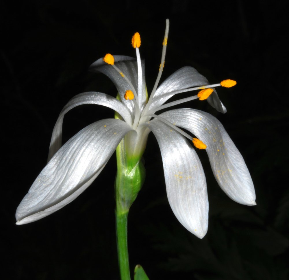 Da wir gerade bei Pflanzen mit grünlichen Blüten sind - die etwas seltsame Whiteheadia bifolia, eine Zwiebelpflanze aus der Familie der Hyacinthaceae, steht ebenfalls in Blüte. Manning und Goldblatt gruppierten sie 2004 in die Gattung Massonia um, und in der Tat sieht sie den Art dieser Gattung mit den beiden flach auf dem Boden aufliegenden, breiten Blättern sehr ähnlich.