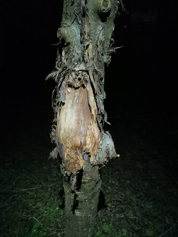 Anbei mal ein Foto vom Topaz die Tage. Der ist schon länger letal durch Diplodia geschädigt. Blieb als senkrechtes Totholz und Biotop stehen. Hat funktioniert. Passt auf die Borkenkäfer auf.