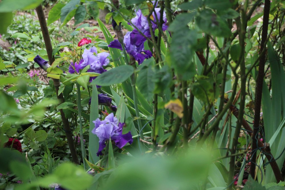 Eine Iris, die hier letzten Sommer mit eurer Hilfe identifiziert werden konnte (danke dafür nochmal an alle Beteiligten!) ist die vermutliche Cee Cee. Deren Hauptpulk hatte ich letzten Herbst an eine Stelle verpflanzt, wo ich sie besser betrachten kann. Dabei aber nicht bedacht, wie schattig er im Laufe der Vegetationsperiode wird. Die wüchsige und tapfere Cee Cee hat sich davon nicht beirren lassen und auch am neuen Platz schon dieses Jahr wieder einige Blüten gebildet: