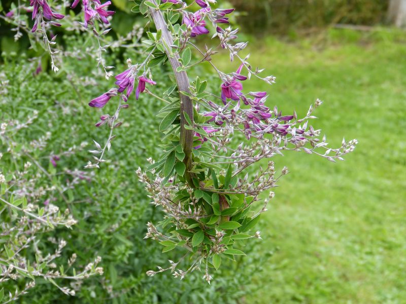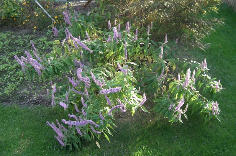 Bei blühenden Gehölzen tut sich gerade folgendes:*bei der Bartblume geht die Blüte zu Ende - sie wird jedes Jahr schöner, eine tolle Sache, und ein Bienen- und Hummelmagnet*die Chinesische Kammminze (Foto) ist in voller Blüte und wird fleißig von Hummeln besucht, leider steht sie ungüstig nah an einem Ahorn und kippt deswegen um*die Leycesterien blühen weiter, auch von Hummeln beflogen, aber es wird langsam weniger, da sie viele Beeren ansetzenIch bin sehr neidisch auf die Lespedeza thunbergii von Hausgeist, meine waren zwar wieder von unten ausgetrieben und gewachsen, aber die unteren Blätter trockneten nach und nach ab und es stellte sich nie ein sattes Grün ein.