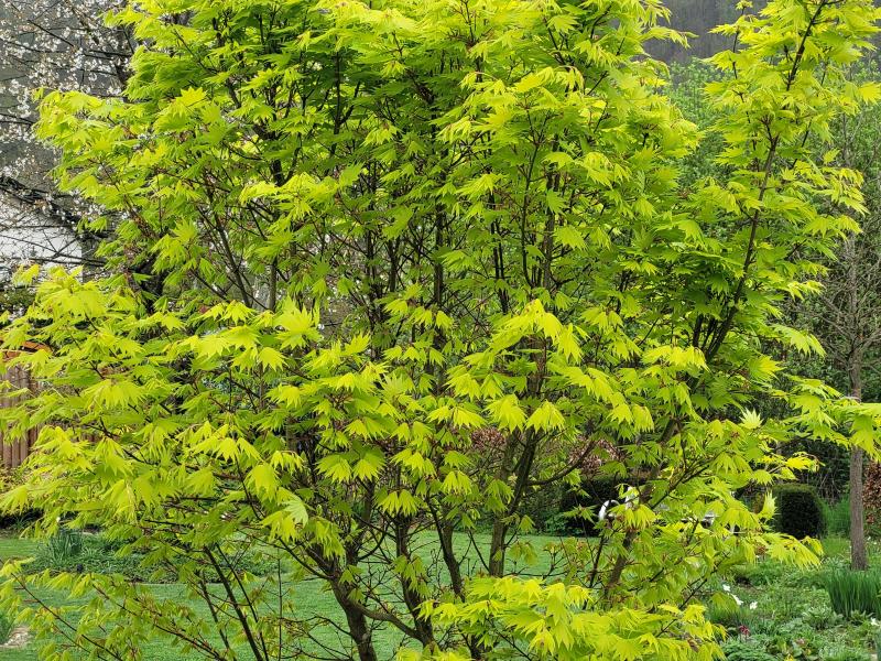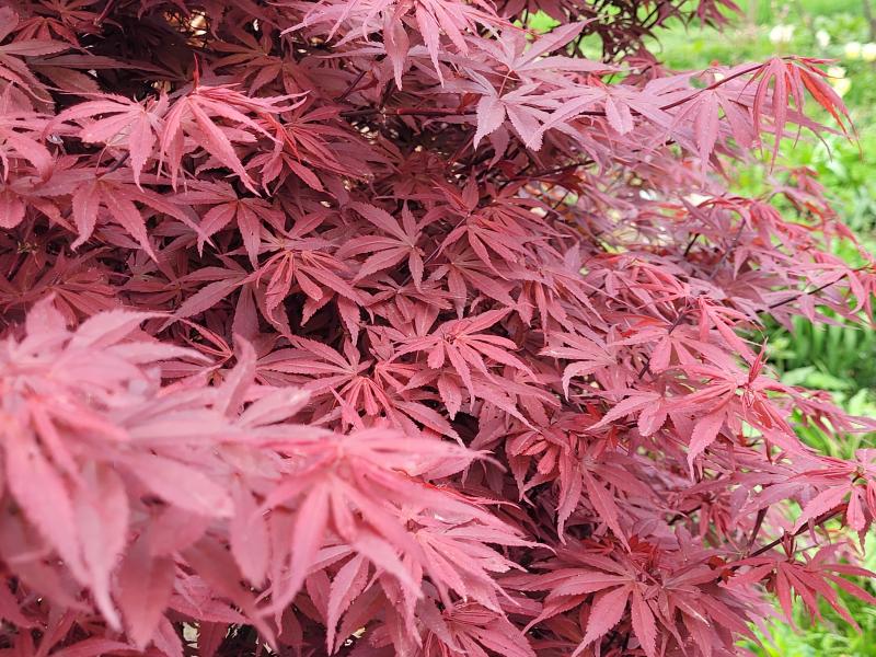 'Mikawa Yatsubusa' ist mittlerweile auch gut ausgetrieben und präsentiert sein ausgesprochen dicht stehendes, spitz gezacktes Laub:
