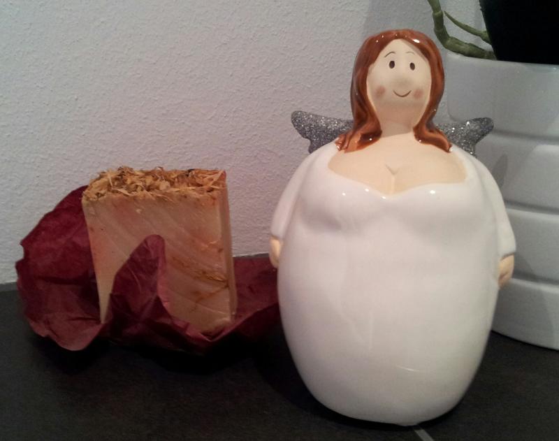 Der Engel hier hatte schon ein paar Plätzchen zu viel. Jetzt hat er sich zur Seife im Bad gestellt, da er gehört hat, dass die doch fettlösend sein soll 8) ;)