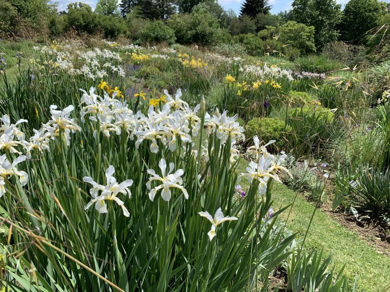 Die weiße im Vordergrund ist die Iris spuria Frigia