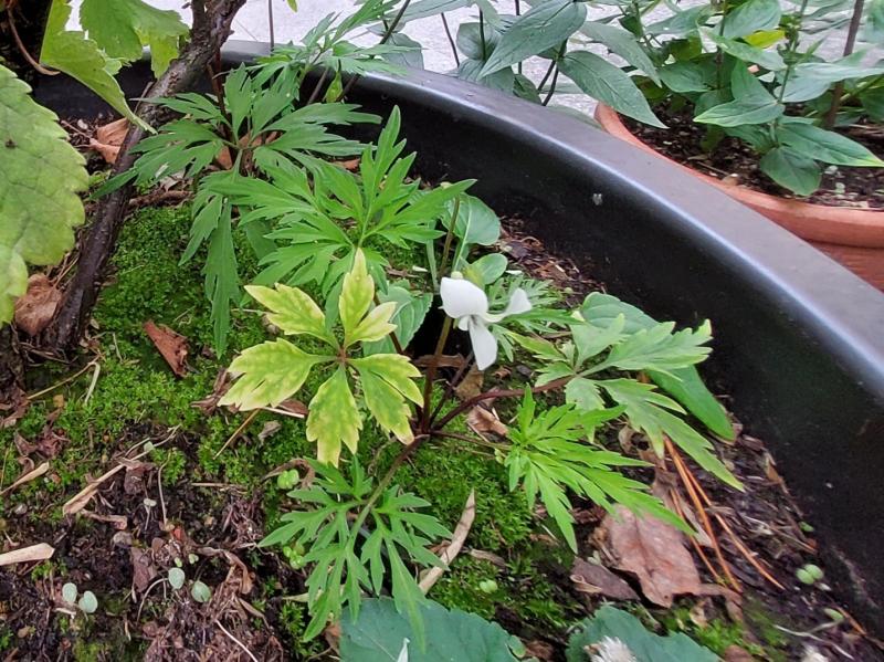 Hier machen gerade die beiden V. chaerophylloides ;) ihre erste chasmogame Blüte - beim einen scheint sie noch nicht voll ausgebildet, beim anderen schon, da ist es die 1. Blüte überhaupt. Übrigens auch wieder nach Düngergabe, das muss ich weiter beobachten. Eines der beiden V.c. hat besonders filigranes Laub, ich bin gespannt, ob das so bleibt.