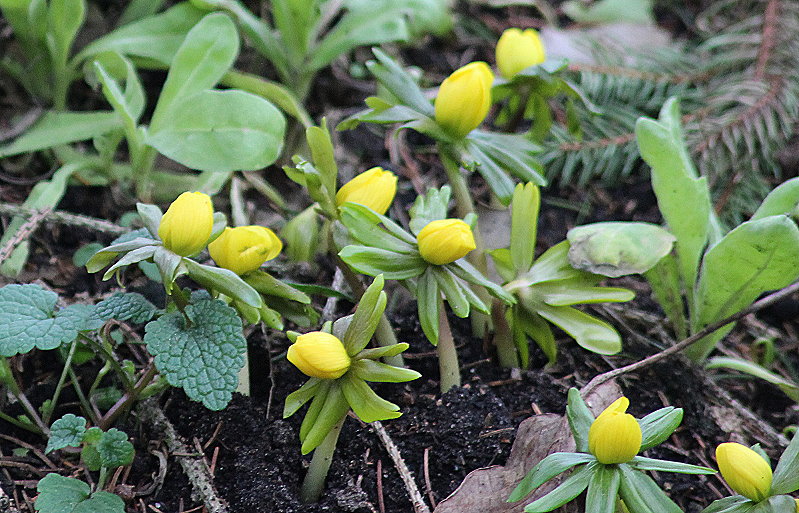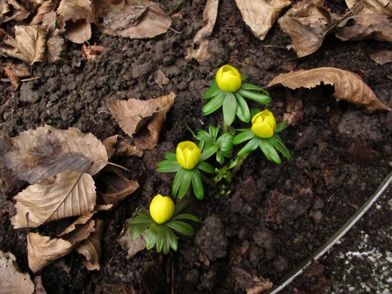 soweit ich eranthis kenne, kommen die triebe mit stiel mit blatt und ggf. auch mit blatt und blütenknospe zur gleichen zeit. das sind keine krokusse. :-\