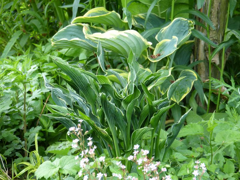 'Niagara Falls' steht dieses Jahr richtig gut da - die Ablenkfütterung mit Petasites japonicus 'Variegatus' scheint zu funkionieren.
