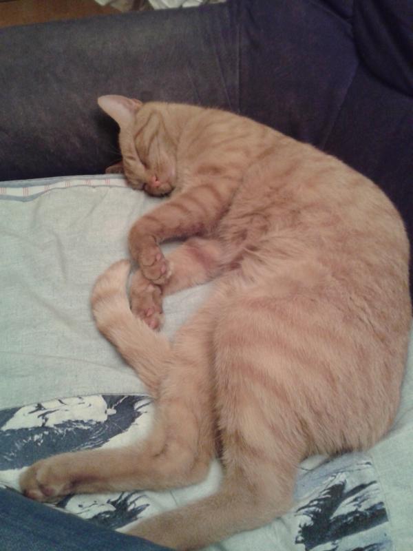 hier läuft ein dicker schwarz-weißer Kater rum. Hübsches Kerlchen mit Ramsnase und weißen Streifen drauf. Der stalkt sie sehr und sitzt auch immer noch auf der Terrassehier nun aber eine kleine Fotostrecke vom Willi er schläft so schön