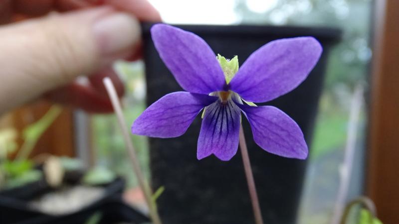 Nachdem die meisten Viola nur kleistogamen Blüten hervorgebracht hat blüht jetzt eins welches aus dem japanischen Samen von Norbert gezogen wurde. Ich kann aber die Sorte nicht bestimmen da ich sie immer nur selektiert habe wenn sie in anderen Töpfchen ausgeät haben. Vielleicht könnt ihr ja bei der Bestimmung helfen.