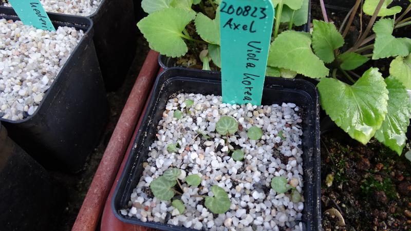 Von Axel habe ich im August ein kleines Töpfchen Viola koreana bekommen. Da sie etwas vermoost waren habe ich mich entschlossen einige Sämlinge schon zu pickieren. Ich hoffe das sie im KH auch jetzt noch weiter wachsen.