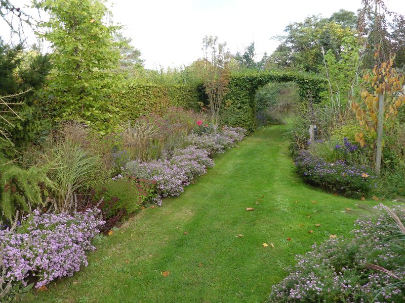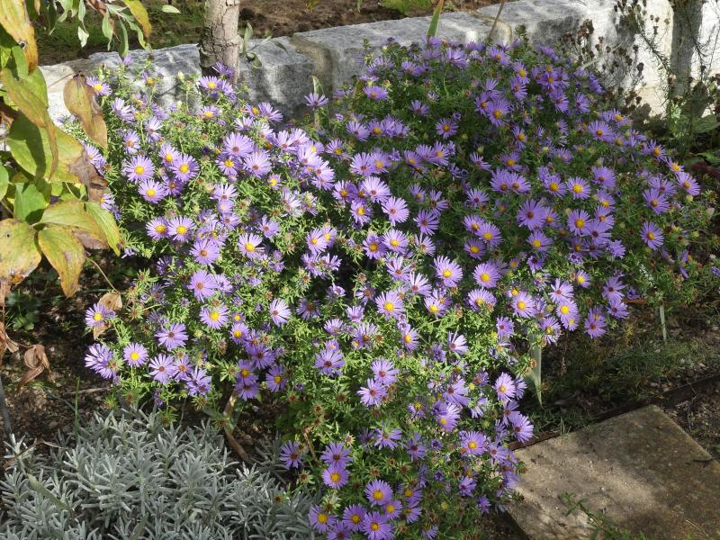Aster ‘Oktoberkaskade’ ist er’s in zweiten Jahr. Luftige Erscheinung. Steht hier sehr trocken und ist sehr gesund.