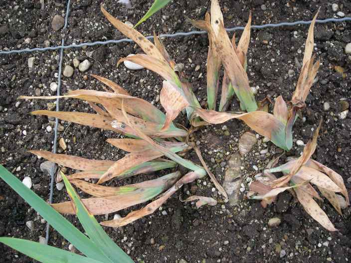 Deine Erwinia geht mir auch noch im Kopf um.Ich muß gestehen das ich als "Fachmann" die Namen der Krankheiten nicht weis. Ist zwar schwach, bin aber bisher auch ohne Namen damit zurecht gekommen.Bauchschmerzen bekomme ich, wenn ich daran denke, du köntest das tun was in schlauen Büchern darüber steht.Für viele Krankheiten gibt es den Supertip "Ausgraben in der Mülltone entsorgen"Dieser Tip ist genial den war erst die Müllabfuhr da. Dann sind sämtliche Indizien vernichtet die den Tipgeber als Stümper enttarnen können.Das auf deinen Bildern war keine Erwinia (Naßfäule) Die sieht man erst lange nach dem man sie riecht. Wenn ich meine Bestände pflege dann kommt es öfter vor das ich mir denke "Na wer stink den Da" und erst wenn man dann etwas an den Blattfächen zieht oder sie sind schon umgefallen dann entdeckt man den stinkenden Brei, befallen werden hier einzelne bis mehrere Blattfächer. Selten ein ganzes Rhizomstück. Pflegemaßnahme habe ich ja schon beschrieben.Das auf deinen Bildern müsste Trockenfäule sein. Plötzlich werden alle Blattfächer eines Rhizoms dürr und es bilden sich auf den Blättern unapetitliche pelzige Pilzsporenflecke (Pilze!!! nicht Bakterien) . Ich habe in meinen Beständen auch ein paar davon.Das dümmste was du dabei machen kanns ist das Rhizom herausnehmen!!!!!!!!Ich hab zwar noch nicht alles durchprobiert, aber aussitzen funktioniert fast immer.Die kranken Blattfächer mit den Sporenflecken entfernen. Bei dieser Krankheit bleibt das Rhizom fest. Es bleibt auch im Boden verankert, obwohl es den Rest dieses Jahres wie tot bleibt. Nächstes Jahr kommen wie schon beschrieben zaghaft die ersten neuen Blattfächer, und ab übernächstes Jahr blüht sie wieder als sei nie was gewesen. Oft wird eine ganze Sorten befallen (weshalb ich diese Verfahren bevorzuge)Sind noch gesunde Rhizome der Sorte vorhanden, dann geht es schneller dieses zu vermehren und das Kranke wegzuwerfen. Eine Ansteckung der Nachbarsorten, auch wenn sie in unmittelbarer Nähe stehen habe ich in 15 Jahren noch nie beobachtet.Gräbt man sie aus, fehlt die Verankerung im Boden und das Rhizom "fliegt" so lange auf dem Boden herum, wird im Winter herausgefroren bis es vertrocknet ist.Da du ja genug Material hast, kannst du mit entbehrlichen Rhizomen auch experimentieren, was passiert wenn man sie herausnimmt und dann nach verschiednen Methoden behandelt. (ob sie dann schneller wieder zum Leben kommen).Die Americaner müssten die Krankheit "Scroof" oder so nennen.Ich wüsste noch schöne Deutsche Namen dafür: "Irisscheintot" oder "Dornröschenpilzkrankheit der Iris"Ich hoffe ich kann dich damit daran hindern, dass du deine Lieben unnötig ins Jenseit schickst.Nicht das ich dir diese kleinen Krabbler noch unbedingt anhängen möchte...aber du hast wirklich noch nie welche gehabt@daylilly. Irisrüsselkäfer![]()