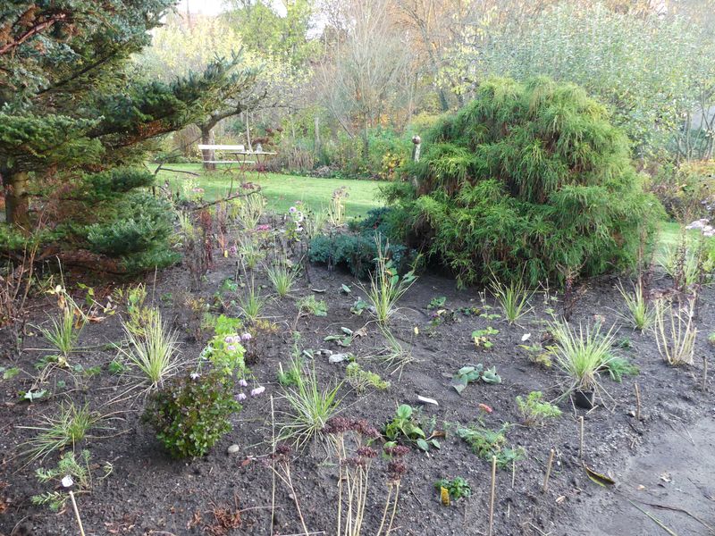 Und nochmal aus der anderen Richtung auf's Beet geschaut. Sieht eingegraben dann alles gar nicht mehr so wild aus. Was nun noch folgt sind gut 1200 Zwiebeln (Tulpen, Allium, Krokusse, Camassia, Fritillaria, Muscari). Der Rest ist dann nur noch die pure Vorfreude auf's nächste Jahr. :)