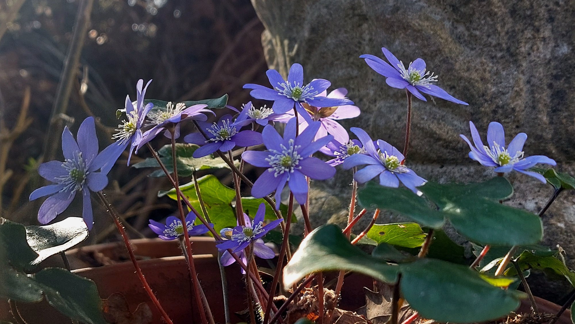 Und schließlich noch ein transsylvanisches Leberblümchen, was mal in einem Überraschungspaket von Arthur dabei war. Es ist etwas eingezwängt zwischen Schneeglöckchen, Cylamen und Helleborus, reckt aber tapfer seine Blüten in die Höhe. Im Schatten verbergen sich noch einige Knospen, es ist immer etwas später dran als die andere Art.