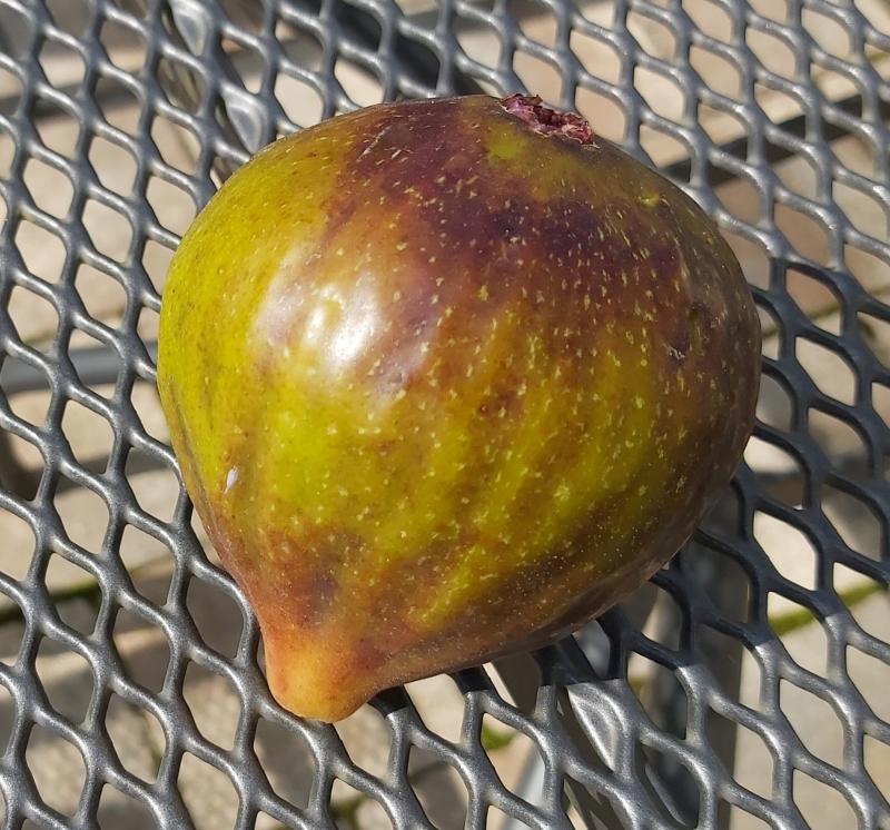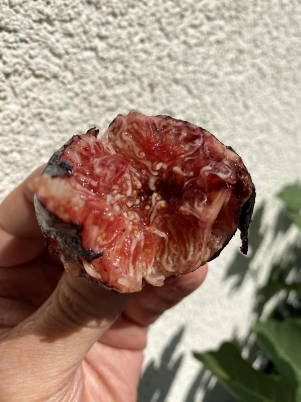 Mein Feigenjahr war dieses Jahr richtig schlecht. Nach einem kalten und verregneten Frühjahr hatten wir einen kalten und verregneten Sommer. Die Herbstfeigen sind alle 6-8 Wochen zu spät dran, so dass nichts ausreifen dürfte. Lediglich meine Dauphine ist eine sichere Hausnummer und hat trotz Regen und kühleren Temperaturen gut getragen, bis die Amseln drüber hergefallen sind und fast alle Brebas angepickt haben. Anbei noch ein Foto einer Breba von heute, die pfirsichgroß ist und 154 Gramm wiegt. Herbstfeigen könnte es an meiner Dauphine auch noch geben, wenn der Herbst einigermaßen freundlich wird. Ansonsten plane ich schon für das nächste Jahr :)