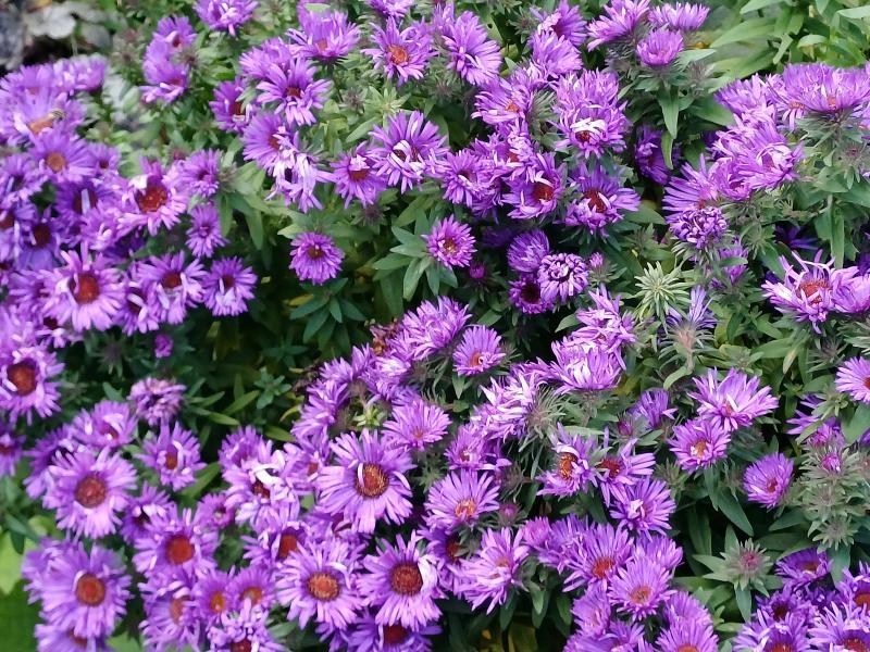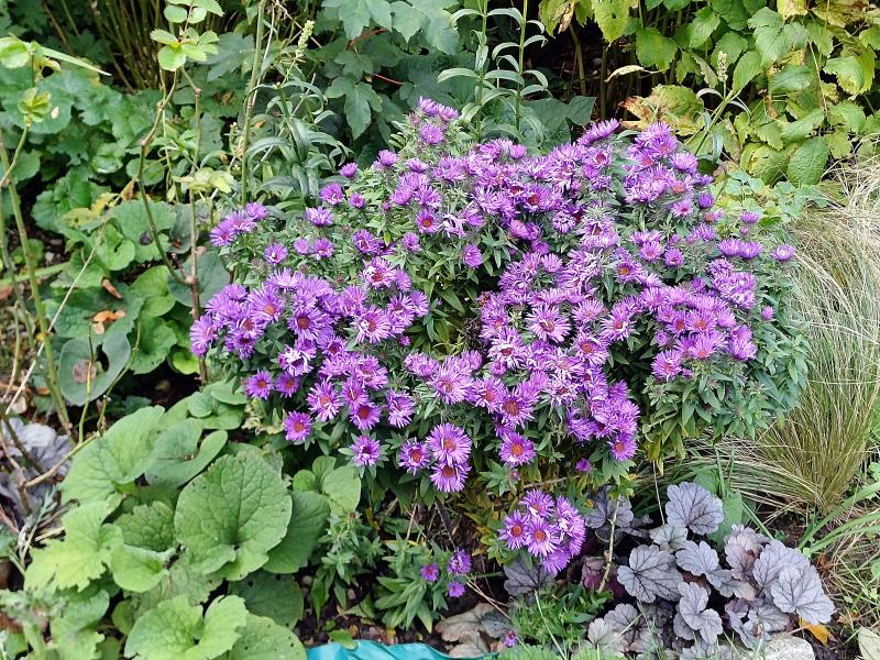 die kurze Raublataster Purple DOme macht das gut mit, hote Rauhblatt-Astern haben meist nackte Füße nachm Sommer,