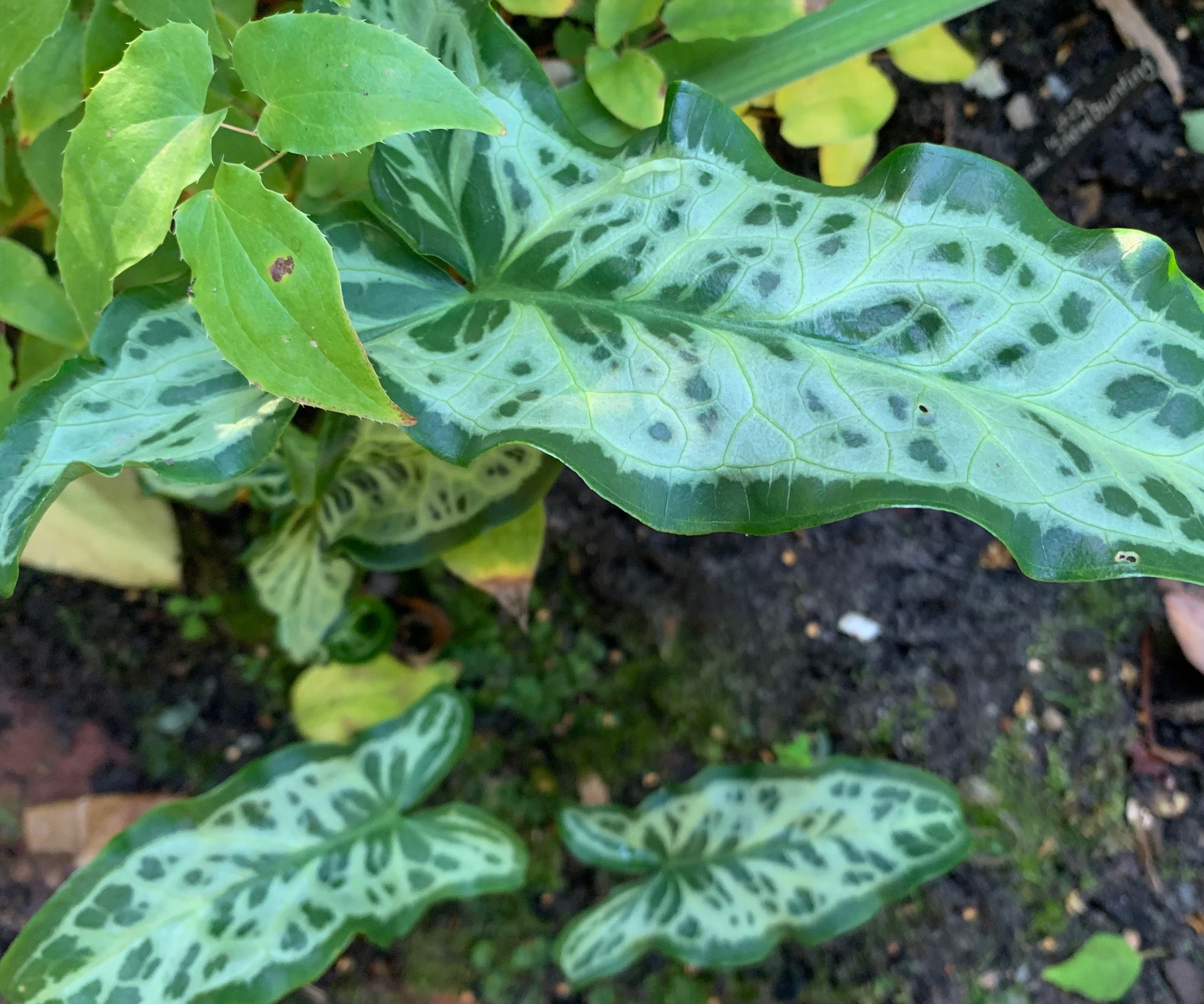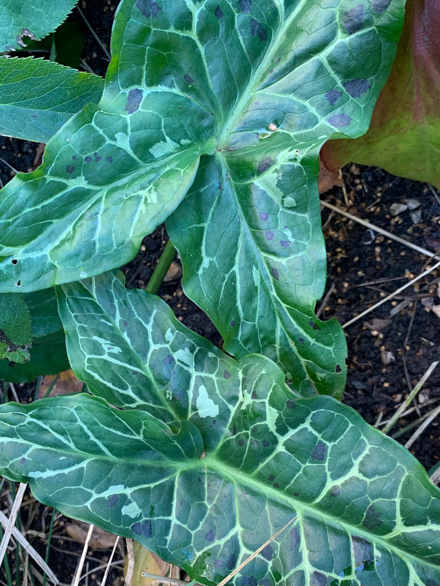 Arum ist völlig unkompliziert und ist die „Hosta des Winters“. Du kannst dich den ganzen Winter über frische, mehr oder weniger gemusterte Blätter erfreuen. Arum legen sich bei Frost hin und stehen danach wieder auf. Du musst nur aufpassen, dass du nicht von der Sammelleidenschaft angesteckt wirst.