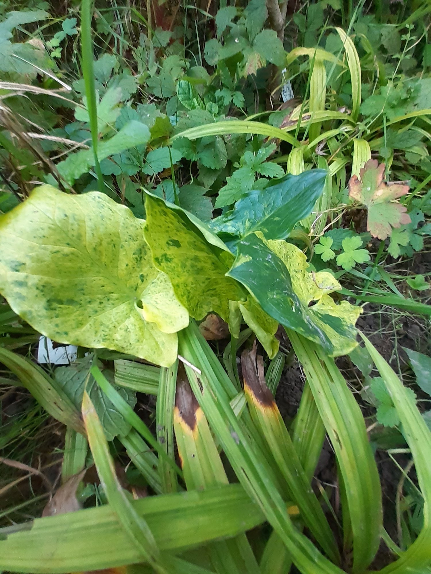 Rocambole und Gartenplaner: Leider war meine Reihenfolge der Fotos falsch. Der gelb-grüne Arum ist ‚Miss Janay Hall‘. Bei diesem Arum ist die Gelbfärbung recht unterschiedlich ausgeprägt. Im vorletzten Jahr hatte ich alle Triebe mit grünen Blättern entfernt. Daher ist viel „gelb“ zu sehen. Ich finde das Entfernen der grünen Blätter hat sich gelohnt. Ansonsten kann es passieren, dass nur noch grüne Blätter austreiben. Auf ‚Painted Lady‘ trifft dies auch zu.