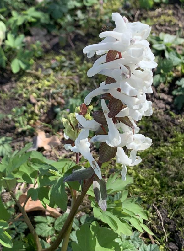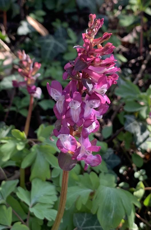 Zwischen überwiegend hellviolett-fleischfarbenen Corydalis cava sind selten auch mal attraktiv zweifarbige Exemplare dabei.