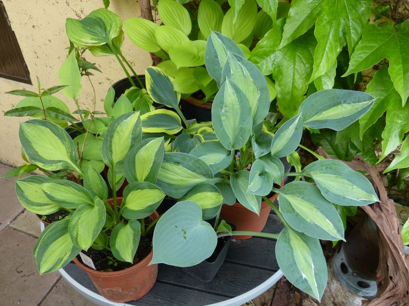 Tischlein deck dich - sozusagen. Das ist ja wirklich schon eine große Sammlung. Da bin ich gespannt, was du zu meinen Hostas heraus bekommst. Da sind auf jeden Fall June, Patriot und Blue Mousear dabei und eine ganz winzige Hübsche von Oile. Und Monster von - ja von wem eigentlich - die waren bei einem Treffen bei mir mit zum Tausch da. Ich glaube Quendula hat auch eine mitgenommen...Das klären wir mit Fotos. Gibt es eigentlich keine von diesen schönen eisgrünen, die auch bissel weiß haben??