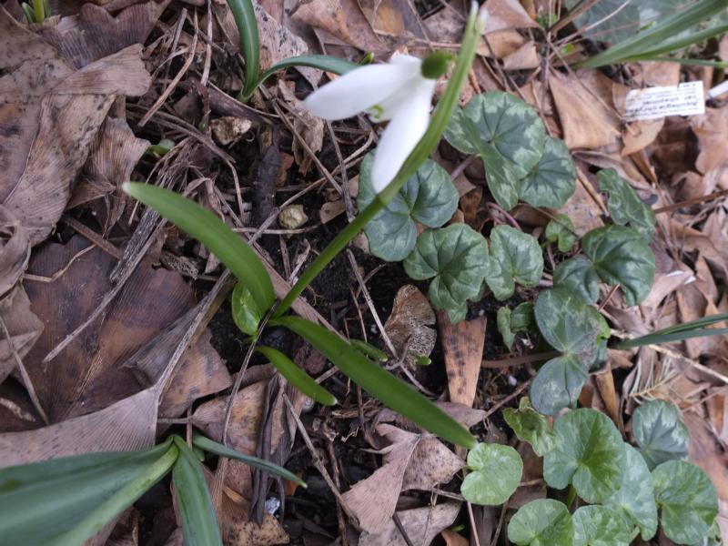 Noch weniger Zuwachs hat G.lagodechianus, privat von kaukasusreisenden Galanthophilen; hat es immerhin in 5 Jahren jetzt auf die 2. Blüte geschafft, bisher jedes Jahr nur eine; in der Umgebung gibt es jetzt grünblättige Sämlinge, mal sehen, was das ist. Fotos von Blatt und Blüte sind älter, die Blätter sind dieses Jahr noch nicht so weit entwickelt.