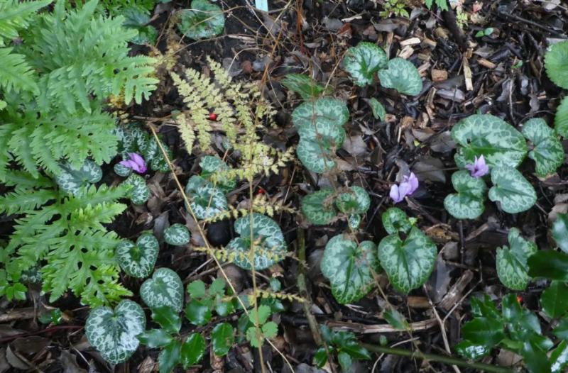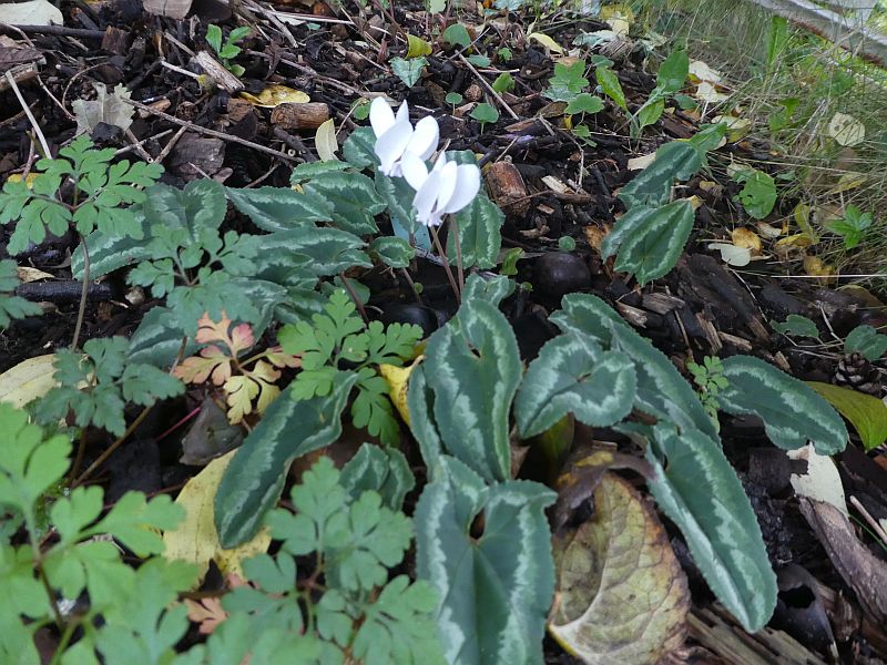 Werden wir denn irgendwann auch Blüten zu diesen Blättern sehen? Die Schwierigkeit liegt wohl häufig darin, dass die einen ( besonders hederifolium) erst blühen und dann erst Blätter bekommen, andere (wie coum) erst Blätter und viel später Blüten, so dass man oft nicht beides zusammen fotografieren kann.