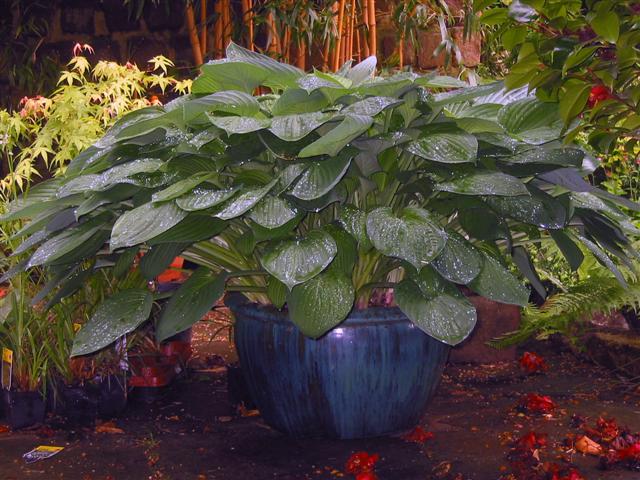 Ich möchte eine XL Hosta in einen Topf setzten, als Strassenbegrenzung; Halbschatten aber leider Mittagssonne, habe an Sum and Substance gedacht, hätte aber gerne was "bunteres"; fällt Euch was ein?Blöde Frage, aber warum muss der Topf klein sein? Wie weiß denn die Hosta ob sie in einem großen Topf oder im Freiland wächst, da braucht sie ja auch keinen Wurzeldruck ???LG Heidi
