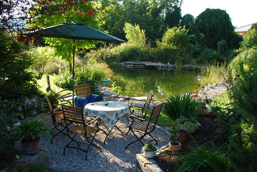 Nein, die Frisia steht hinter dem Sonnenschirm. Unter der Blutpflaume. Dürfte vom Bogen mit Clematis tangutica (jedenfalls war es eine gelbe...) aufgenommen sein, so er denn noch steht ;)Hat sich einiges getan bei Euch, Katrin! Ist wieder ein schöner Sitzplatz - mit Blick auf Teich und Frisia-Beet :DThomas, das ist ja ein genialer Ausblick! Beneidenswert!