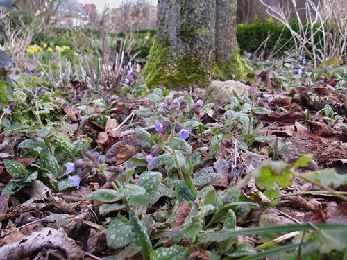Eigentlich kommen in den Wäldern der näheren Umgebung keine Lungenkräuter vor. Mein Gartenboden ist eher sandig, wird jedoch regelmäßig mit eigenem Kompost und Laubmulch im Herbst aufgebessert.Gekaufte Sorten haben sich hier auch immer nach wenigen Jahren verabschiedet. Diese drei Sämlinge existieren jedoch schon sehr lange.Von den Wildarten sind hier P. rubra und P. angustifolia 'Azurea' sehr dauerhaft. Letztere bildet jedoch keine geschlossene Pflanzendecke und zieht über Sommer hier ein.Neu ist hier 'Trevi Fountain'. Mal schauen, ob sie es hier länger aushält.