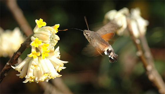 Eben war ich im Garten, um nach den Frühlingsblühern zu schauen. Ich bin dann ins Haus gestürzt, habe die Kamera geholt und ein paar Bilder geschossen. Denn ein Taubenschwänzchen im Februar - damit hätte ich wirklich nicht gerechnet.
