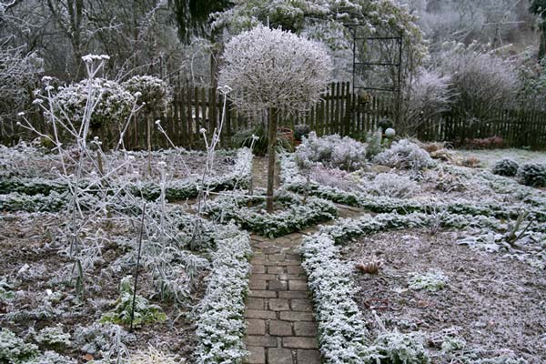 Dieser Behauptung muss ich aufgrund eigener Erfahrungen vehement widersprechen.Der Buchs, der bei mir zuerst befallen war, stand auf einem sandigen, durchlässigen Boden in voller Sonne, windumspielt. Mein Garten befindet sich an einem Südhang (in 350 Meter Höhe) in relativ freier Lage. Meine Rosen gedeihen hier gerade wegen des Standortes prächtig (= luftig und sonnig). Die Erde wurde in diesem Gartenteil von einem Lastwagen hergekarrt. Nur in diesem Gartenbereich wächst Lavendel, Muskatellersalbei etc. ganz hervorragend, während in meinem restlichen Garten lehmige Bodenverhältnisse vorherrschen. Ich denke, genannte Pflanzen sind ein Garant für sandigen, durchlässigen Boden. Also, der Buchs hatte dort beste Bedingungen, besten Standort und beste Erde.Der Pilz hat so eine Kraft, der rafft auch den gesündesten Buchs hinweg. Wenn man nur eine Hand voll infizierter Blätter auf vollkommen gesunden Buchs wirft, dann ist auch dieser infiziert. Das garantiere ich. Ich werde ständig wegen dem Pilz angerufen und kann anhand von mehreren Beispielen bestätigen, dass auch vollkommen gesunder Buchs nicht verschont bleibt. Als die Seuche bei mir ausbrach, war nur der obere Gartenteil infiziert. Der untere Gartenteil war noch in keinster Weise befallen. Ich habe auch diesen, damals noch gesunden Buchs mit Gesteinsmehl eingestäubt, ihn mit Teebaumöl gegossen, den Boden mit gut abgelagerten Kompost aufgelockert, mit Chemie gespritzt, mit EM behandelt und mit Orus gegossen. Und was hat es genützt! Absolut nichts. Gary Rogers, der Neuseeländer Fotograf, hat zu meiner Freundin gesagt: Wer den Pilz einmal im Garten hat, hat keine Chance. Der Mann kommt in der Welt rum und spricht aus Erfahrung. Darum mein Rat an die Betroffenen: Findet euch mit der Buchskatastrophe ab. Je schneller ihr euch mental vom Buchs verabschiedet habt, umso besser geht es euch. In meinen Augen hat der Buchs keine Zukunft. Es sei denn, es wird ein hochwirksames Spritzmittel entdeckt. Wenn ich ein Baumschuler wäre, würde ich mich schleunigst auf Eiben, Lonicera, Ilex und dergleichen umstellen. Mir ist klar, dass dies die wenigsten Baumschuler hören wollen, aber die Wahrheit darf man aussprechen dürfen, oder?!Bei uns breitet er sich rasant aus. Ich habe vor wenigen Tagen die Buchshecke meiner Freundin inspiziert. Ich war geschockt, wie schnell er sich auch noch im kühlen Herbst ausgebreitet hat. Auch meine Nachbarin hat es jetzt auch massiv erwischt. Also hat die Spritzung mit Saprol Pilzfrei auch nichts genützt. Dieses Spritzmittel verwendetet sie regelmäßig. Wer den Pilz im Garten hat, hat keine Chance. Dies ist der Gartenteil, in dem der Pilz zuerst ausgebrochen ist. Im August/September 2007 gings los. Ich habe dann im April dieses Jahres den Buchs komplett rausgerissen. War ne arge Schinderei, denn der Buchs hatte furchtbare Wurzelstöcke. Ich habe dann anstelle des Buchses dort Lonicera nitida Maigrün gepflanzt. So sieht mein Gemüsegarten jetzt aus.Ganz rechts seht ihr Eibenkugeln.Daraus ergibt sich, dass Buchs in unseren Gärten nur dort gesund bleiben kann, wo man ihm einen luftigen Stand bietet. .