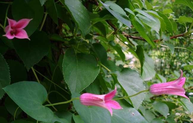 und ein Versuch seit diesem Jahr - auf der Südseite Cl. Princess Diana +Kletterhortensie(8Jahre alt) am einer Eiche - die vom Bild oben.