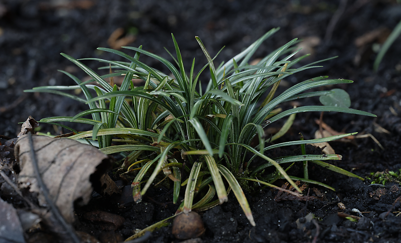 Der ist hübsch! Ich habe Ophiopogon japonicus 'Kigimafukiduma', auf den fiel mein Blick erst heute wieder. Der ist mit feinerem Laub sehr viel weniger auffällig.