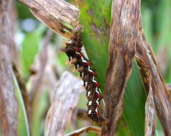 Eine Ampfer-Rinden-Eule raspelt an meinen Irisblättern...