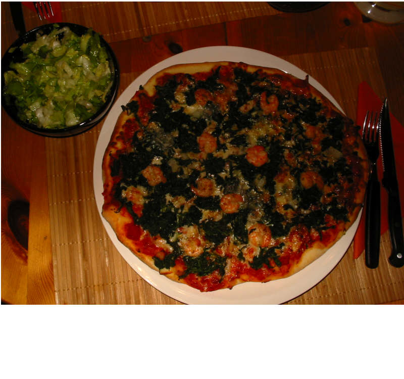.Bei und gab es heute Pizza von der Granitfliese, Spinat-Garnelen-Gorgonzola, als Schieber hab ich mir jetzt zwei große Laubsägebretter besorgt, damit schaff ich es jetzt, die Dinger auf die heiße Fliese zu schiebn, ohne, dass der Belag abschert.Als Teig hab ich jetzt Aellas Variante mit dem Weizengries gemacht, der läßt sich wirklich wunderbar ausrollen, ohne sich gummiartig wieder zu Zwergenfladen zusammenzuziehen.Dazu gab es Endiviensalat.edit: ich säe Chinakohl immer im Spätsommer im Garten, der wächst rasant schnell, die Köpfe werden wohl nicht so dick, wie die im Handel, dafür sind sie grüner und haben sehr viel mehr (etwas eigenwilligen) Geschmack und sind grüner.